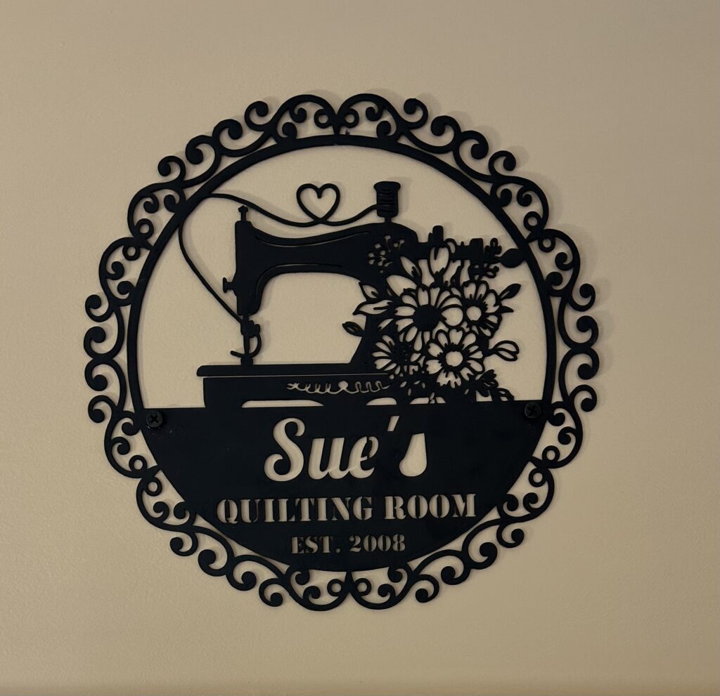 I remembered I had another kinda green WIP that’s been hanging around for a while. The blocks were all sewed together & I had started hand quilting it months ago but the embroidered blocks are so heavy that the sashing doesn’t hold them. I unpicked & left it. On Saturday, I bought some green thread & did some FMQ with my machine in the sashing in one sitting, made & sewed on the binding, then three TV evenings got it tacked down. So this project begun in 2021 is done & hanging on the wall. I ordered a hanger as soon as I finished quilting & it got here at the same time as I finished binding. Win!