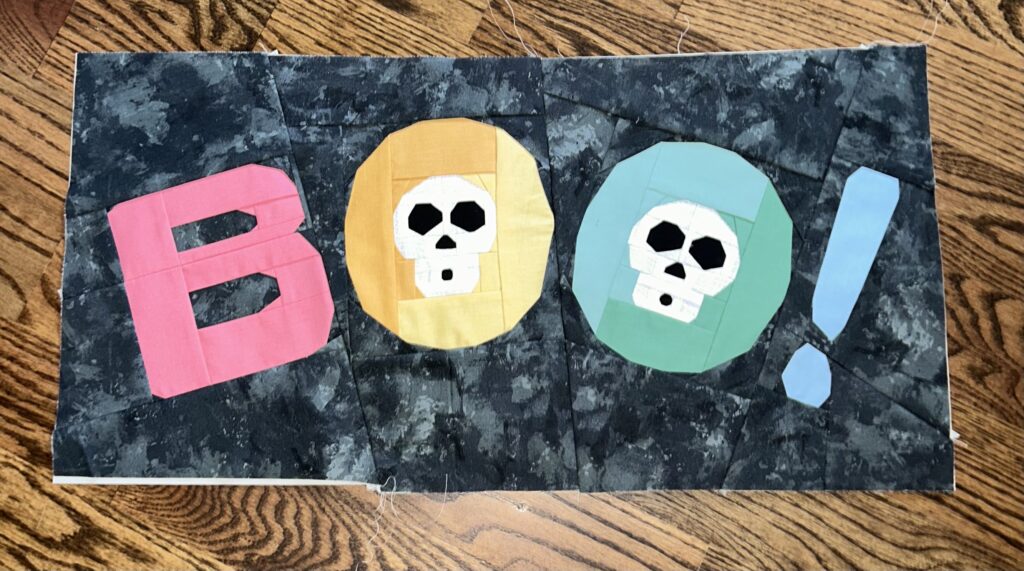 Over last weekend, I did hand-quilting & binding on the October banner. So it’s done on display! I may start on the December banner soon. We’ll see. Note: this is straighter in real life than it looks in the photo. Whew!